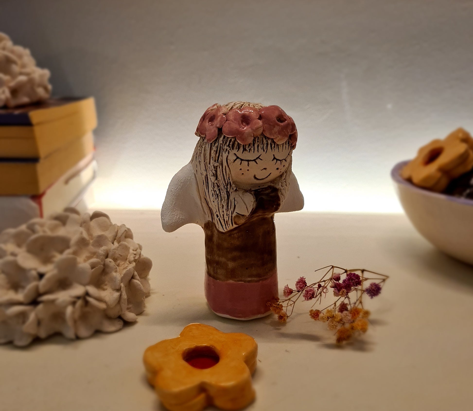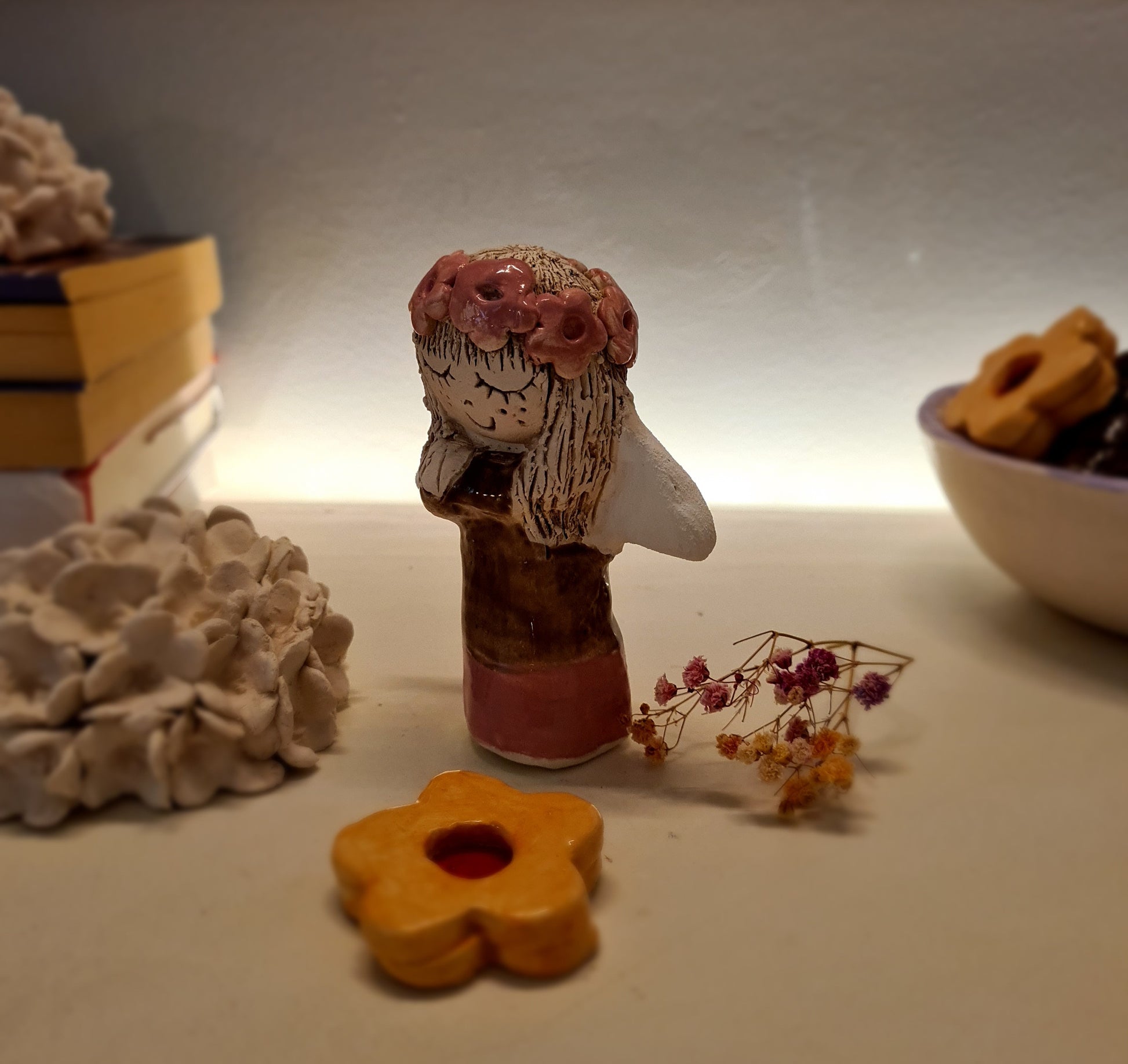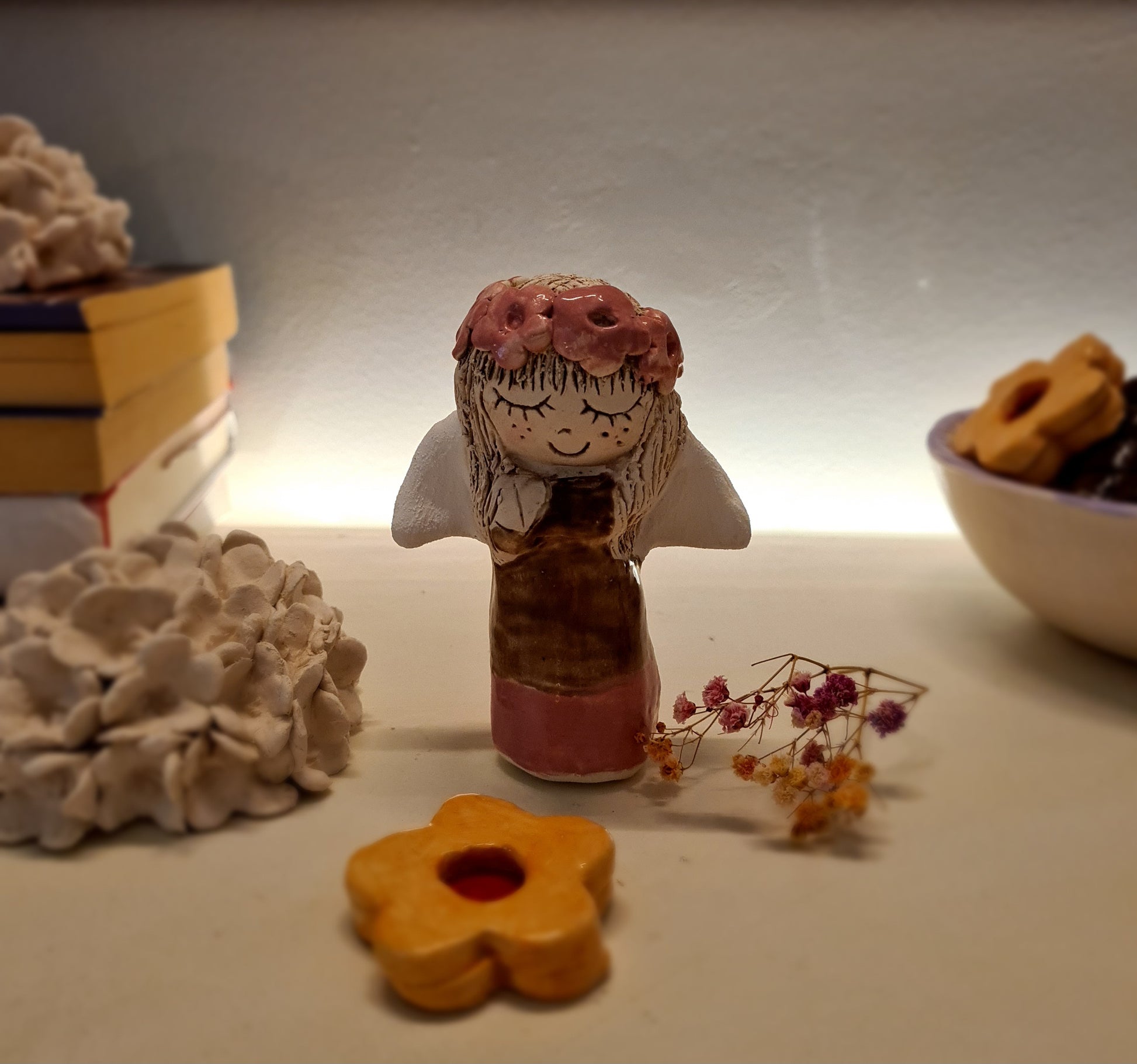 Ovaj mali ručno izrađeni keramički anđeo unosi 🌿 toplinu, 💫 nježnost i 🌸 vedrinu u svaki prostor.