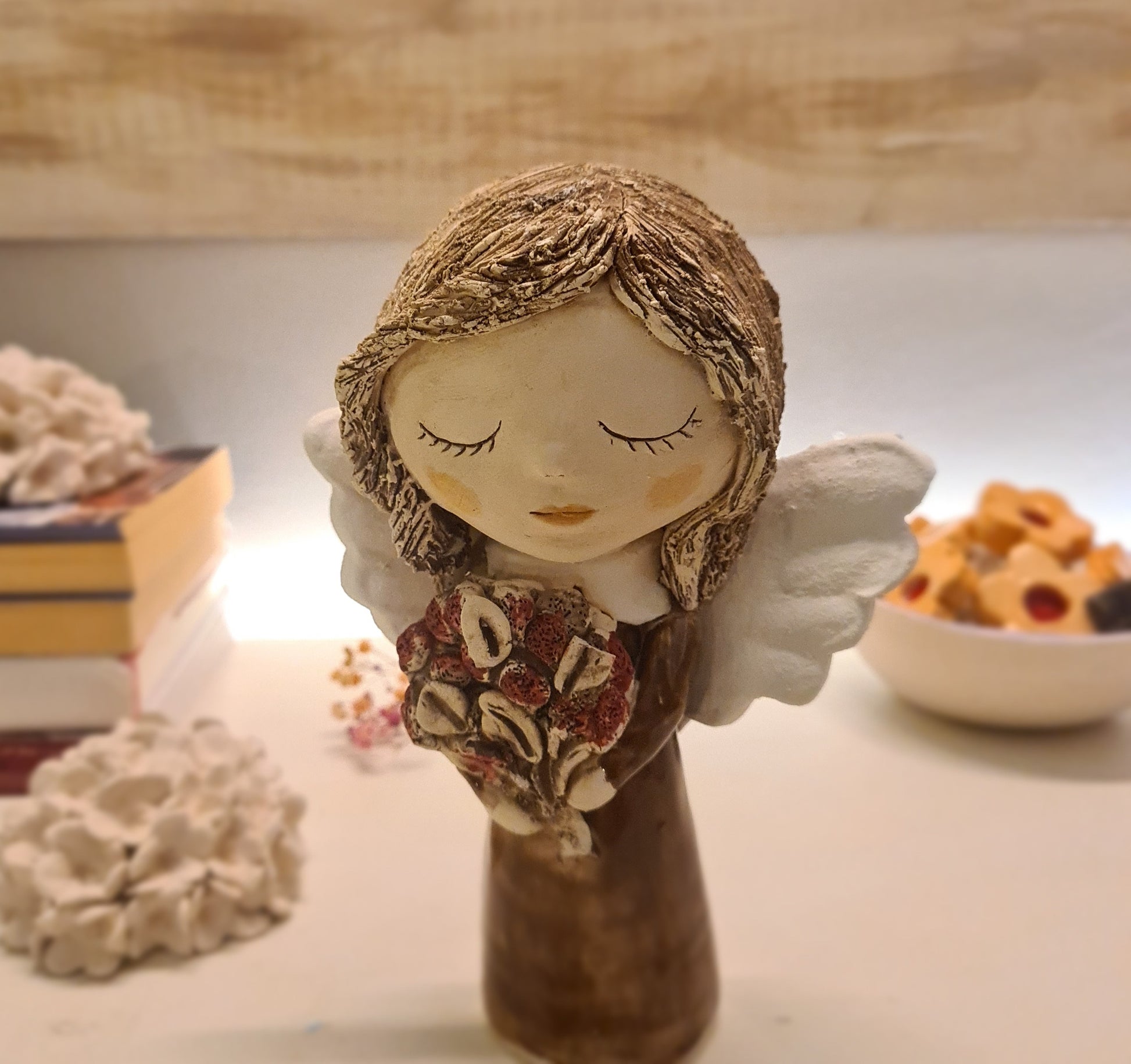 Ručno oblikovani keramički anđeo iz kolekcije Tišina duše.