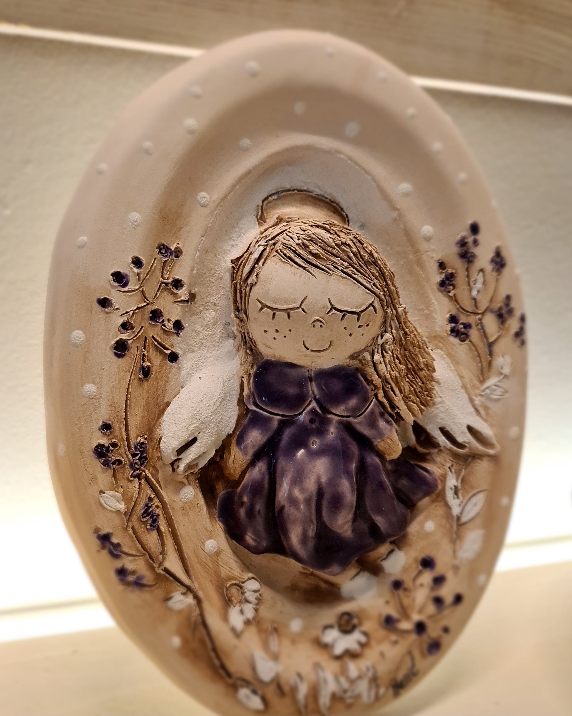 Keramička zidna slika „Anđeo“ – ručno rađena (20 × 15 cm)