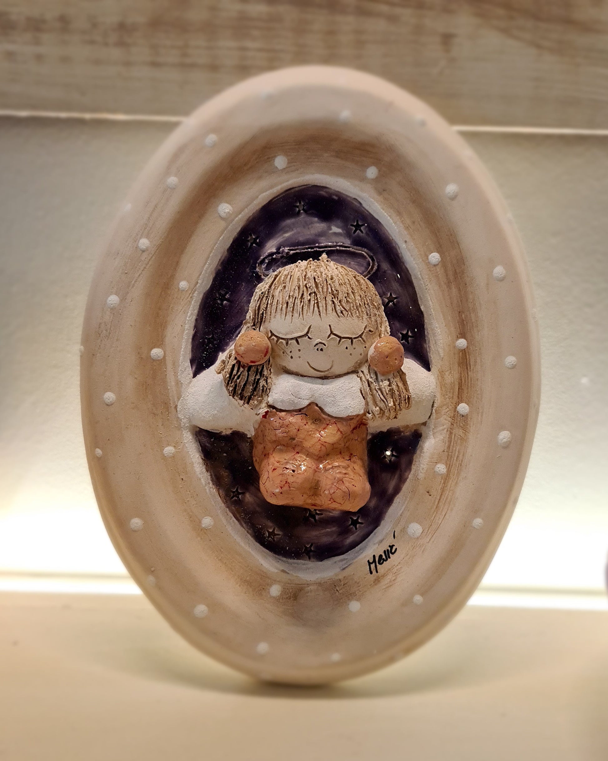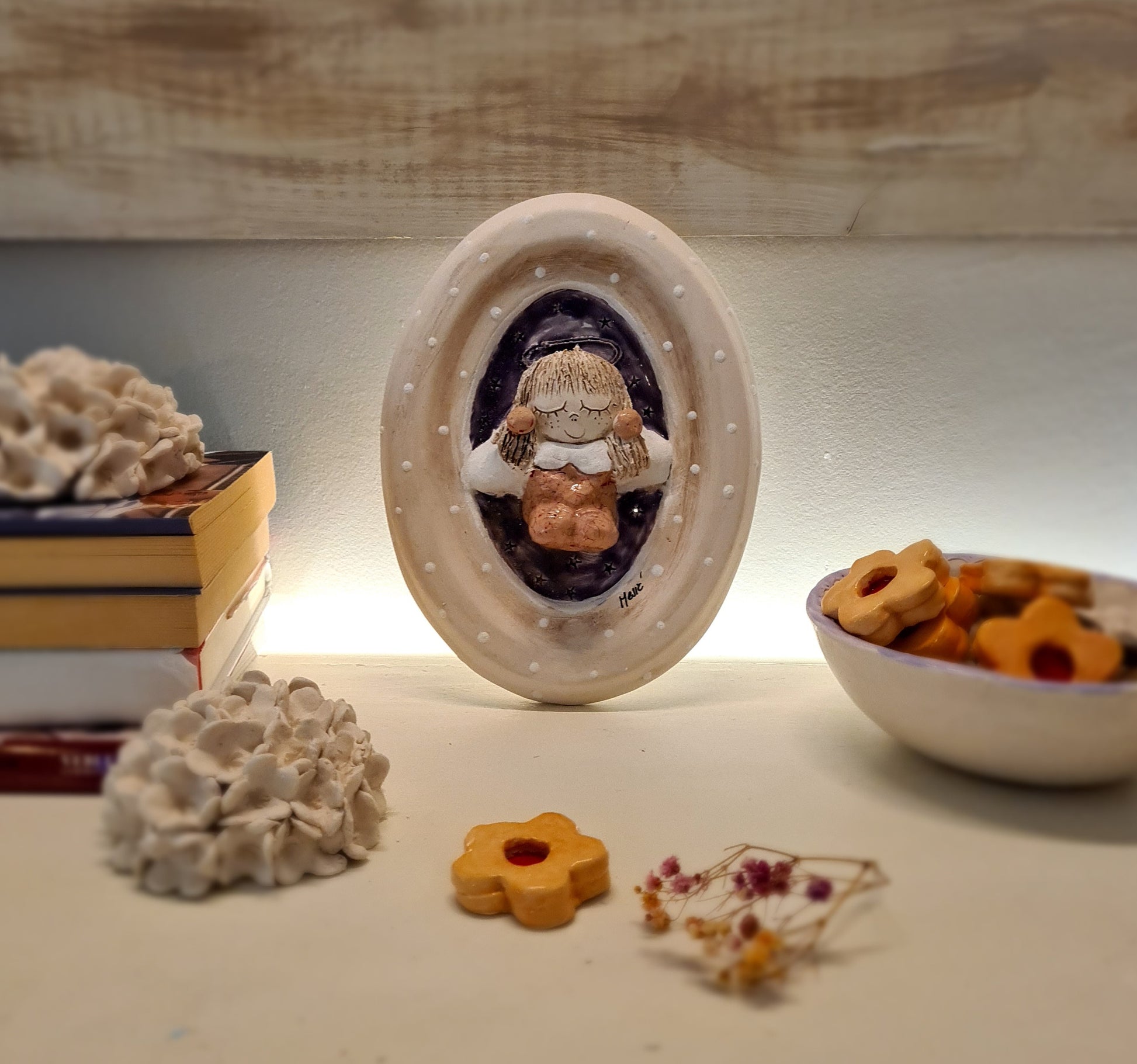 Keramička zidna slika „Anđeo“ – ručno rađena (20 × 15 cm)