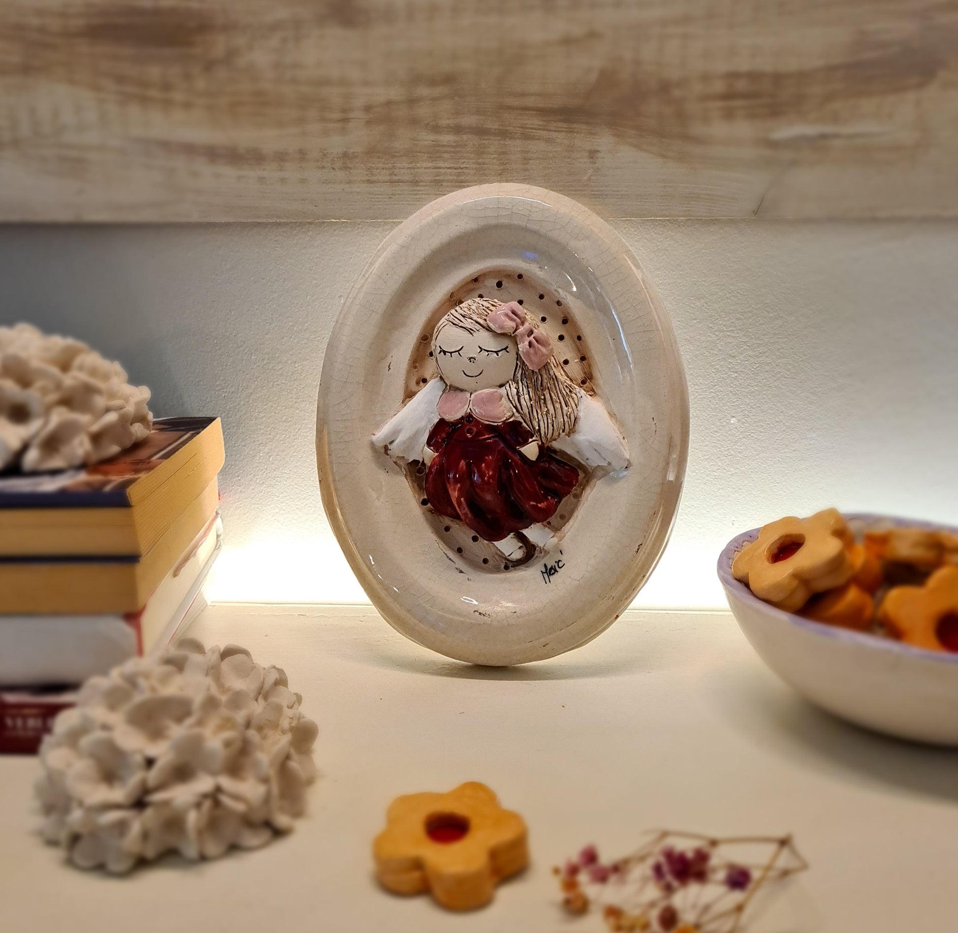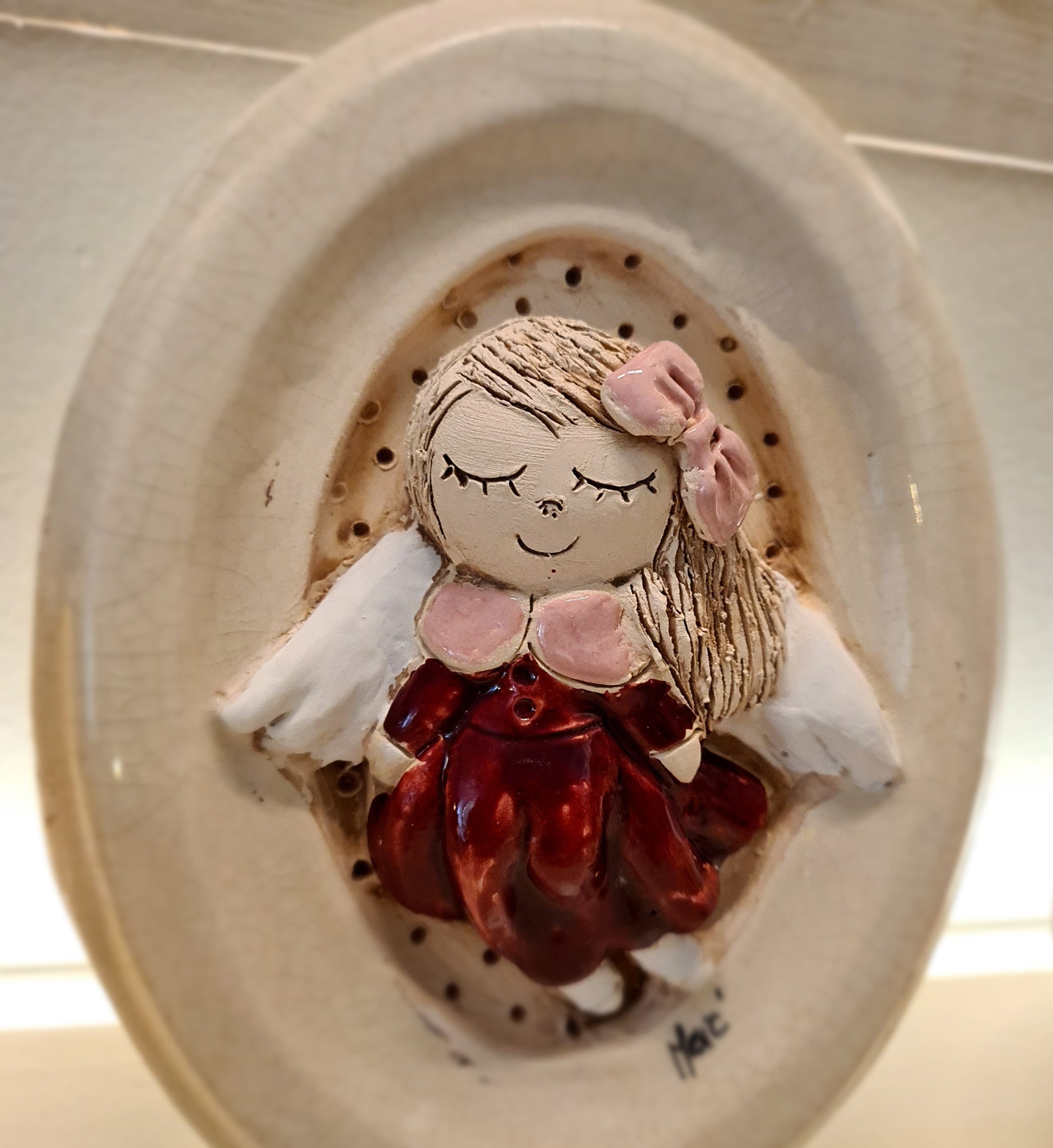 Keramička zidna slika „Anđeo“ – ručno rađena (20 × 15 cm)