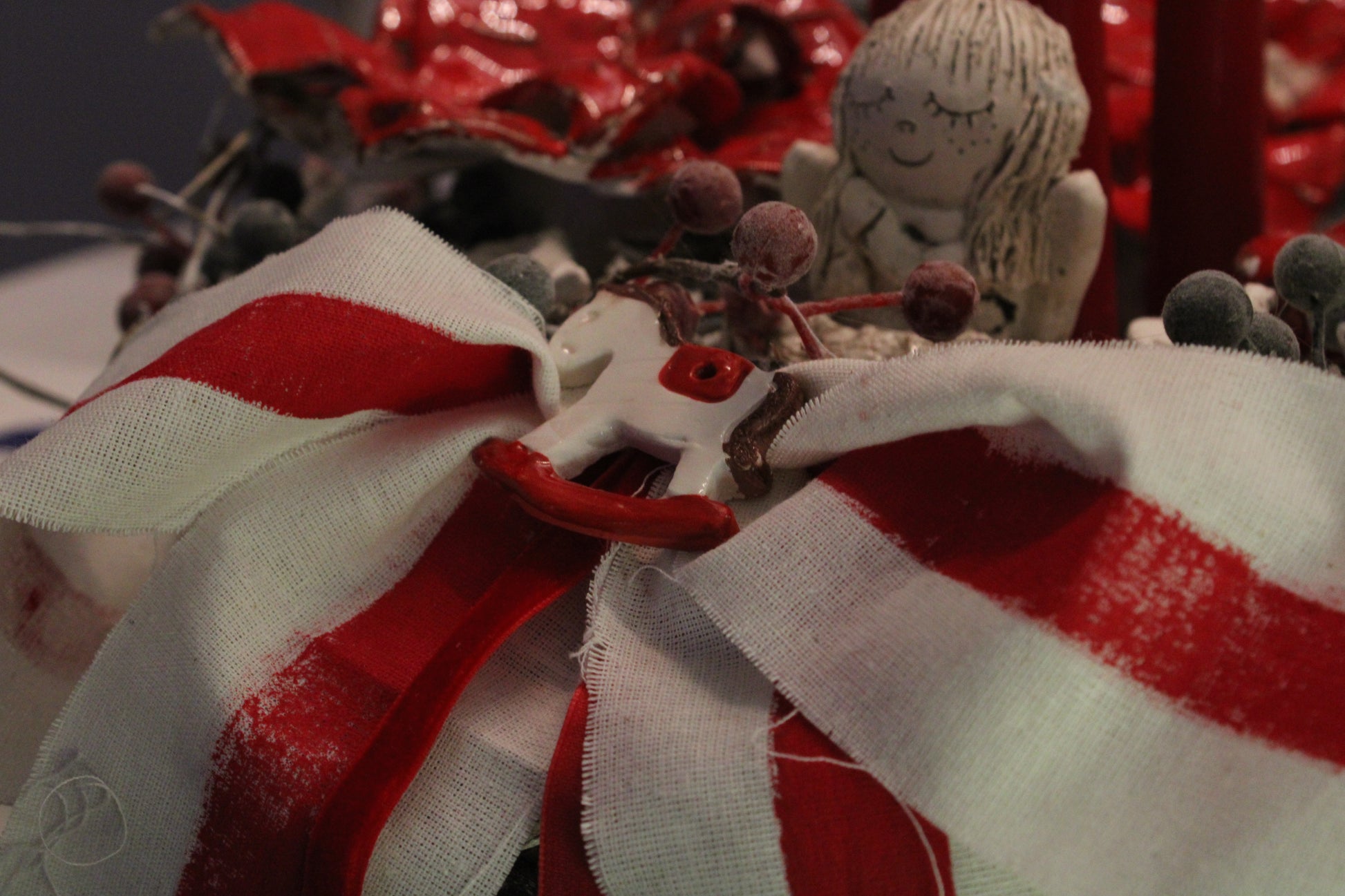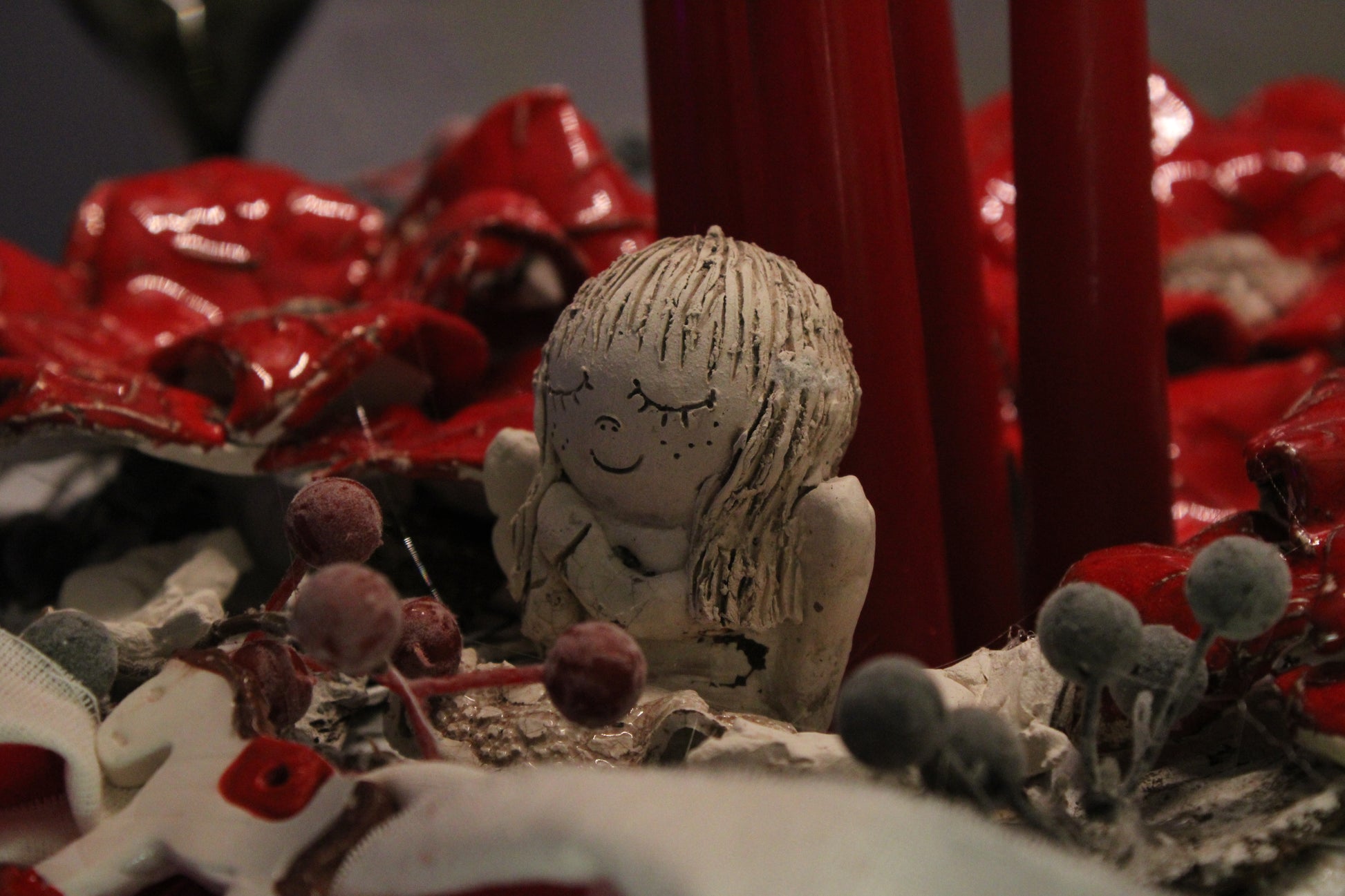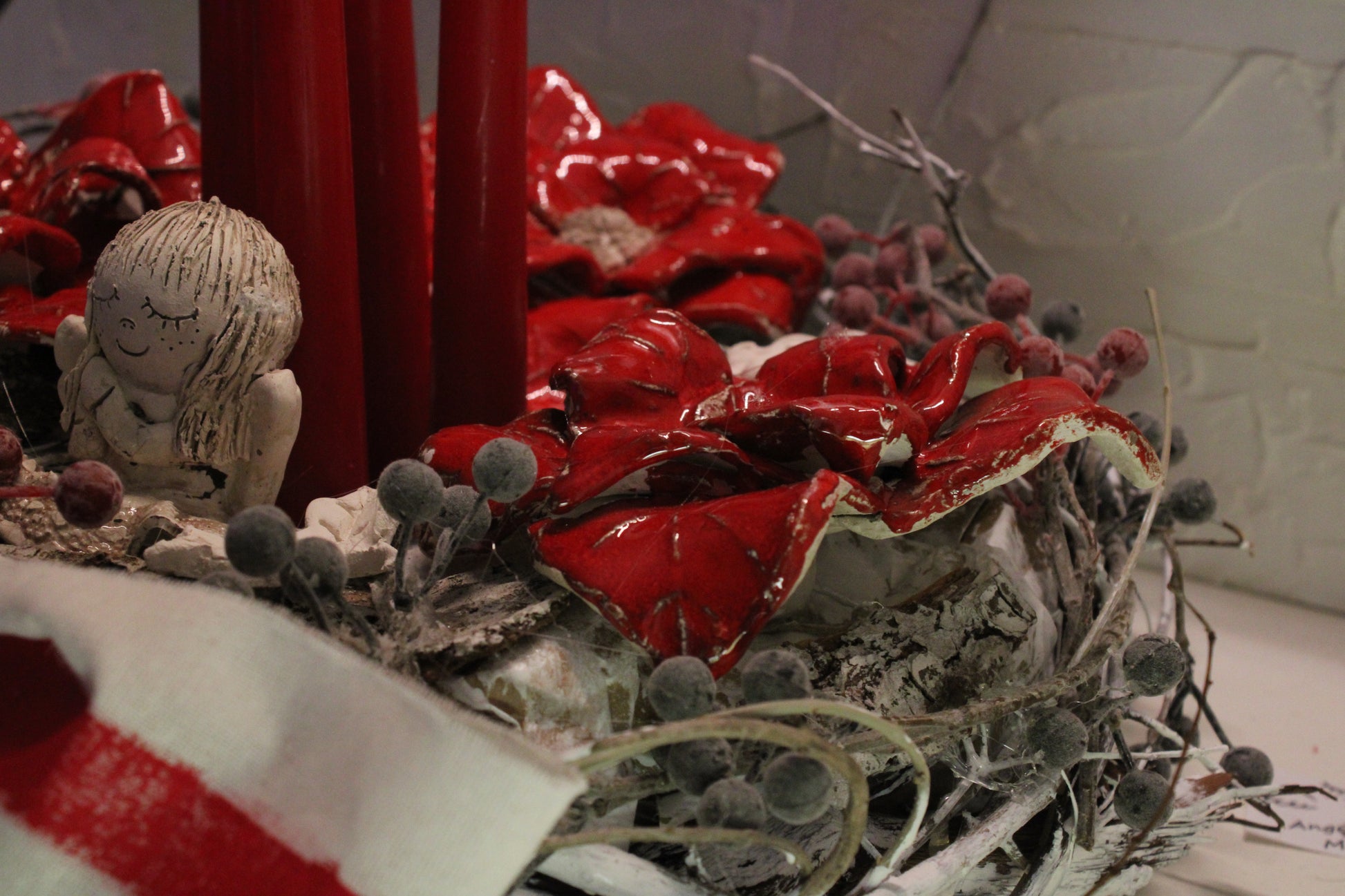 U središtu se nalaze četiri keramička svijećnjaka, također ručno izrađena, a vjenčić dolazi u kompletu s četiri adventske svijeće.
