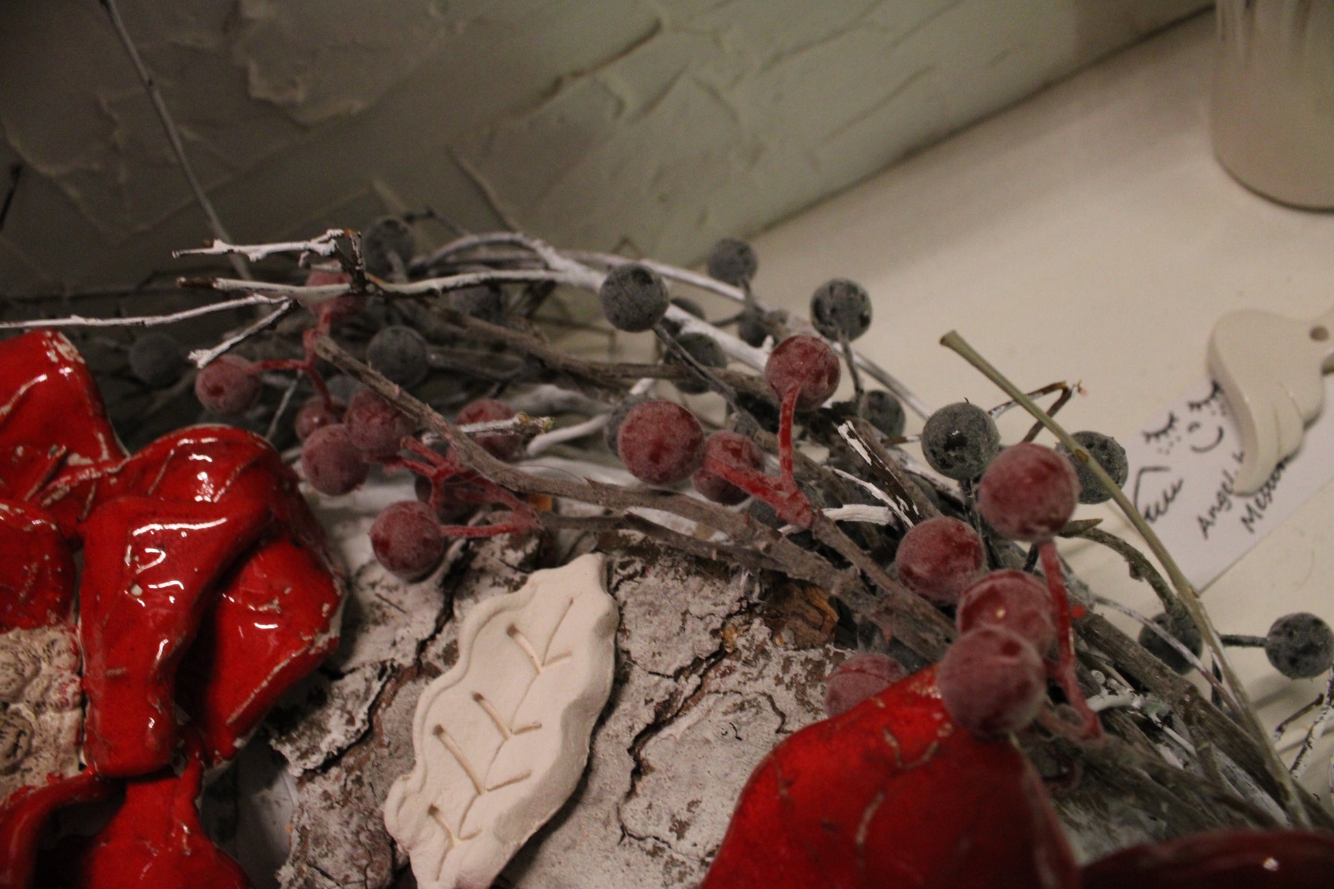 Ovaj vjenčić spaja tradicionalne božićne motive i suvremeni keramički dizajn, stvarajući dekoraciju koja ostaje trajna i elegantna iz godine u godinu.