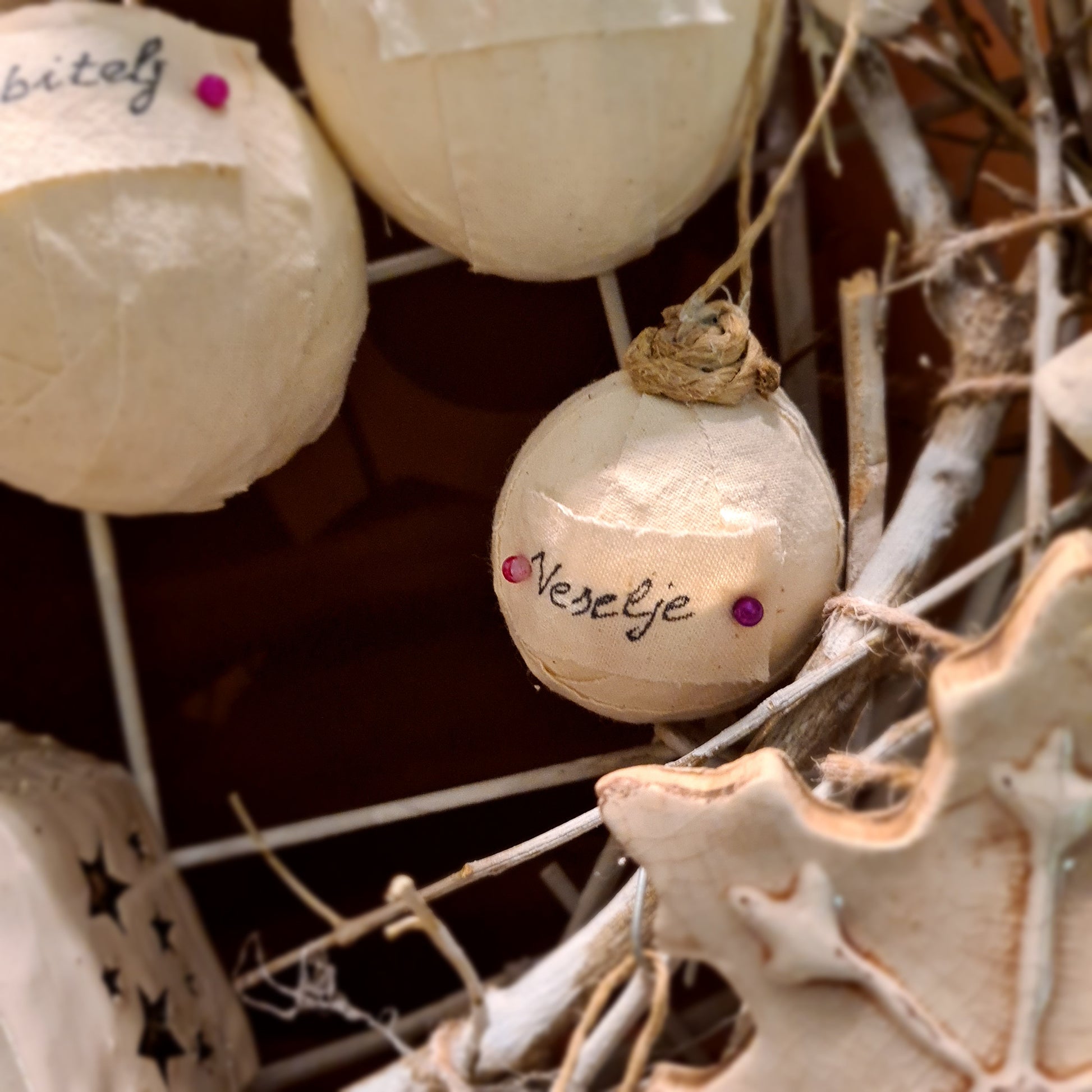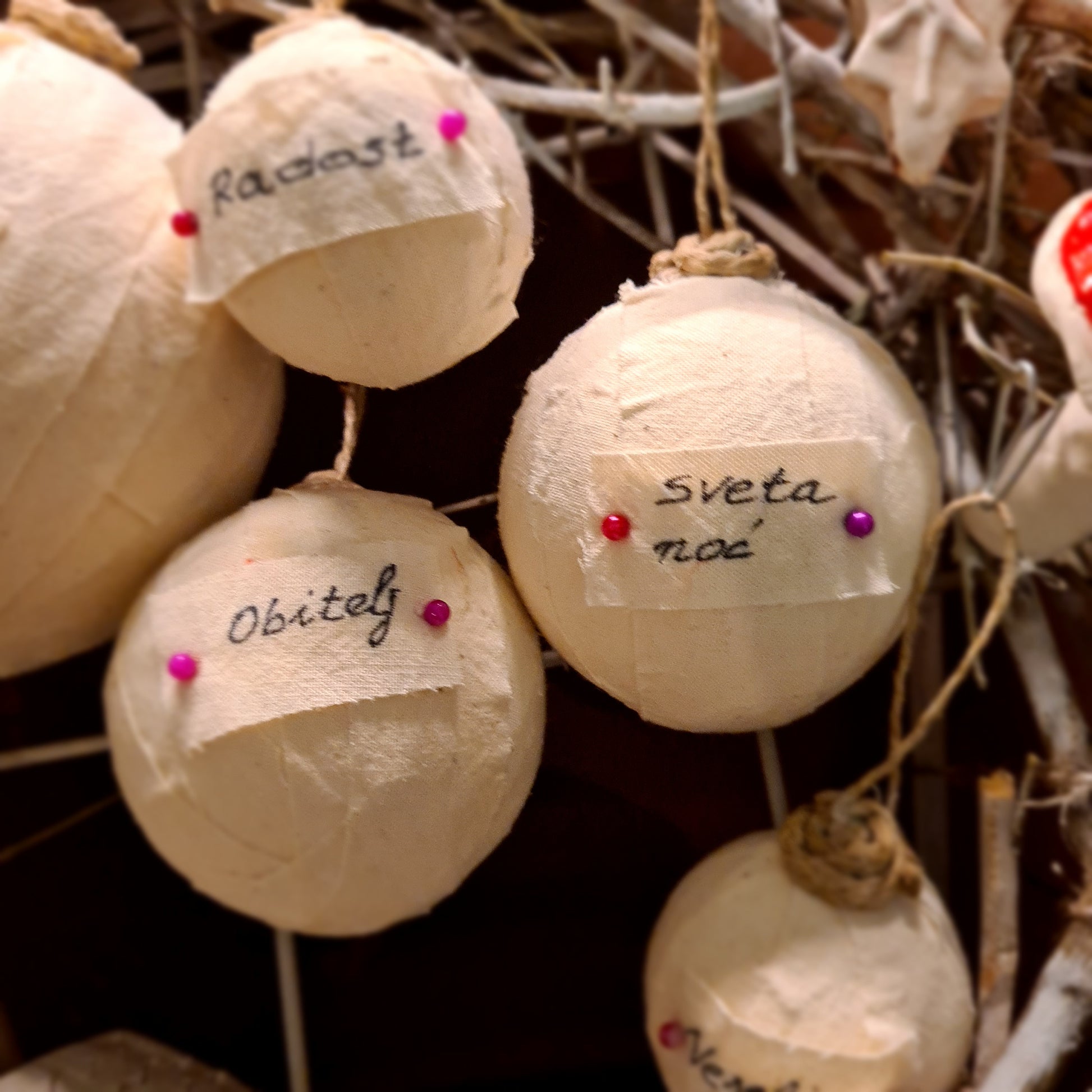 ručno oslikane kuglice s detaljima i natpisima