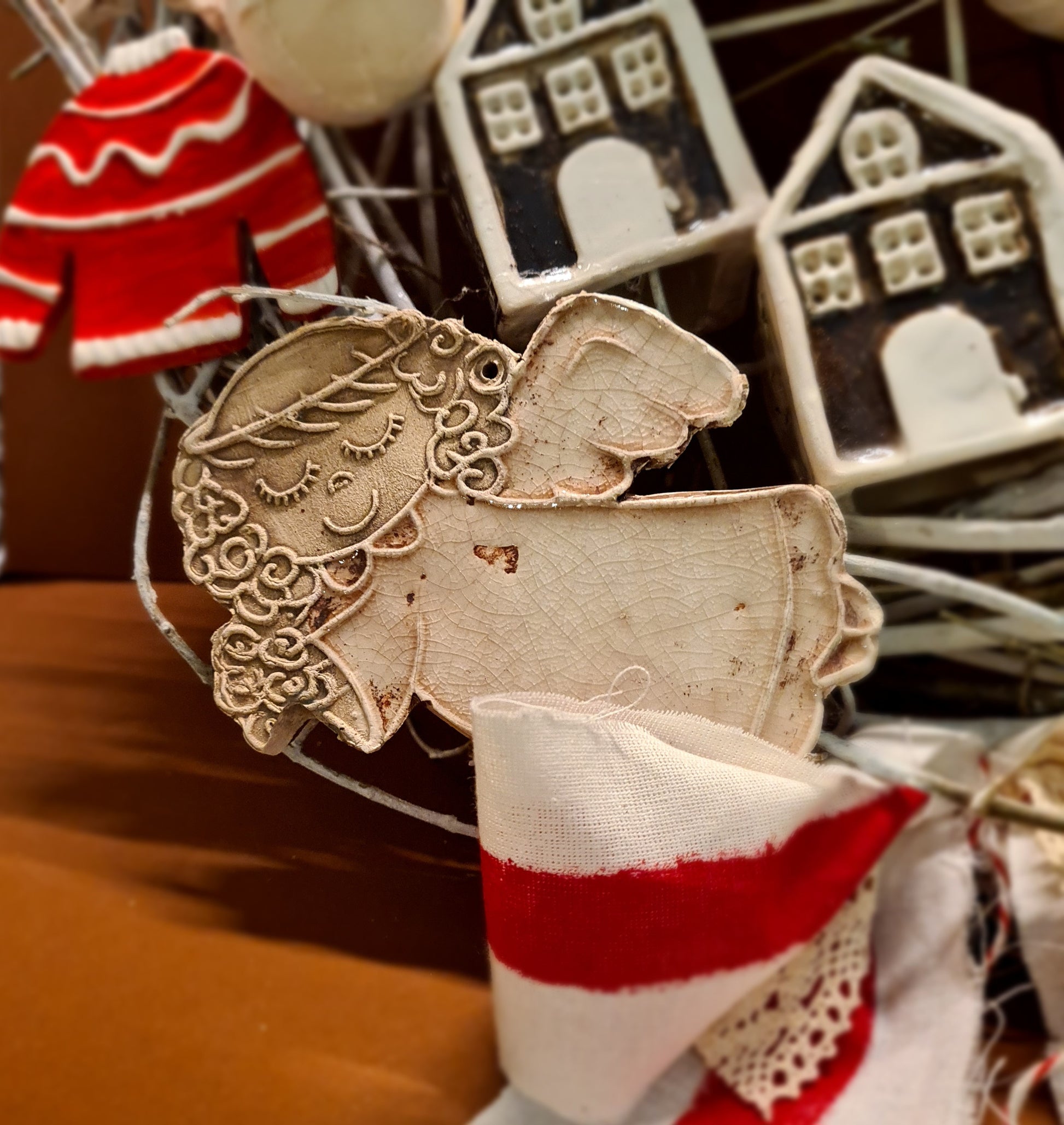 Veliki božićni vjenčić od keramike – približno 45 cm