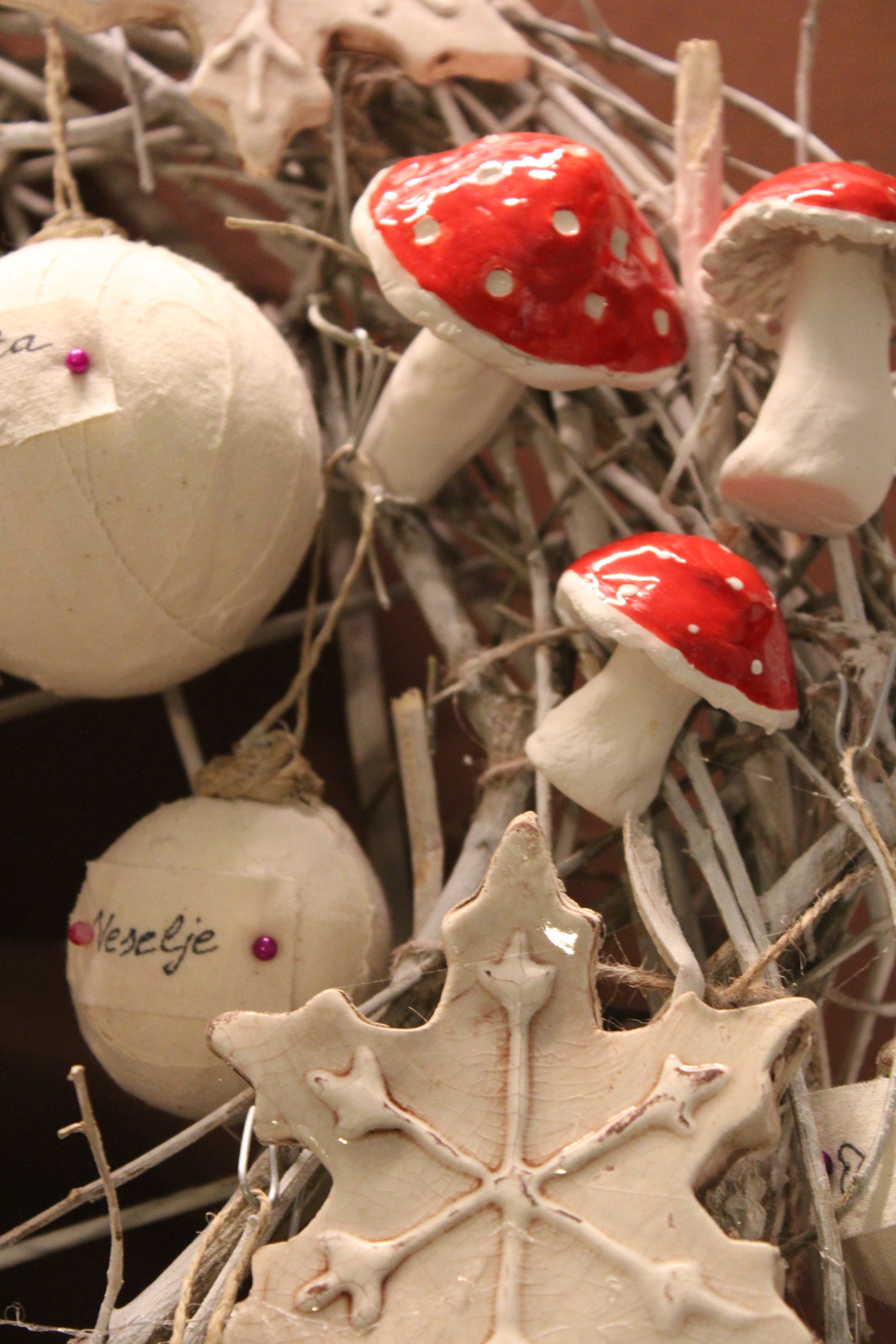 pahulje, zvjezdice i gljivice od keramike